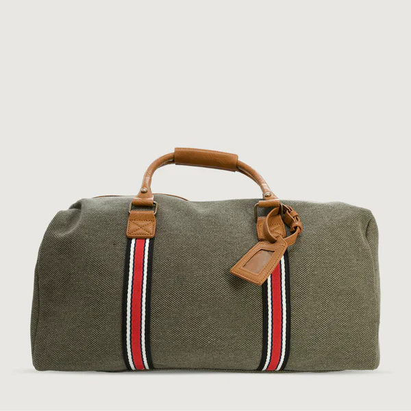 Cotton canvas with PU leather straps and trims- 60cm x 24cm x 30cm
