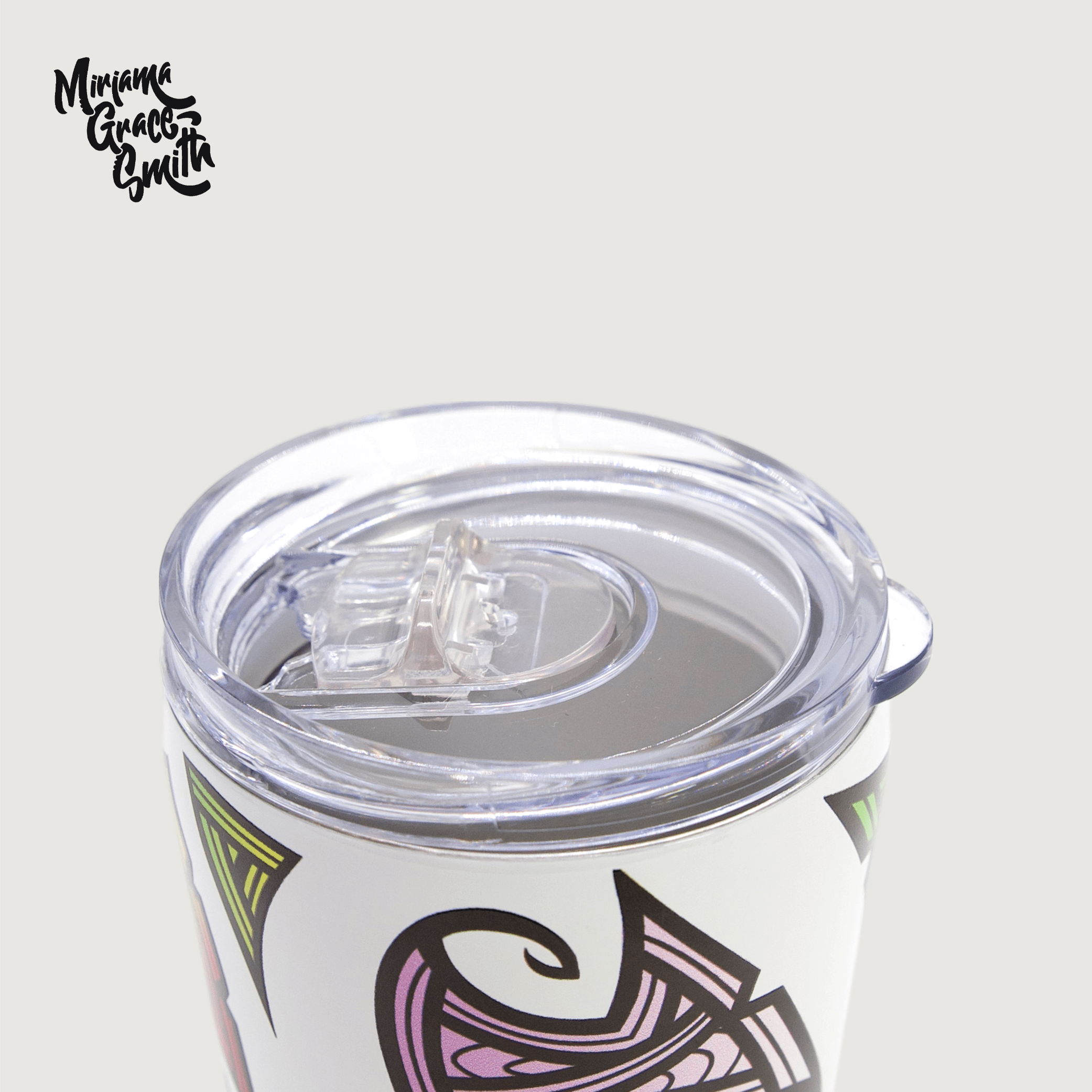 Sip in style with the Miriama Grace-Smith designed E-Mug! This insulated mug will keep your hot drinks hot and your cold drinks cold, plus comes with a lid that'll keep things extra fresh.